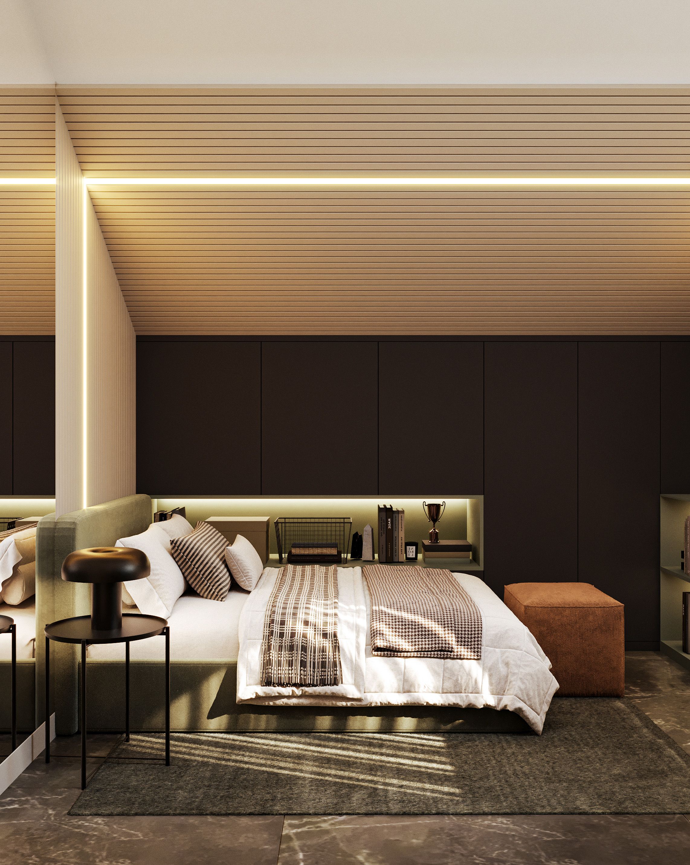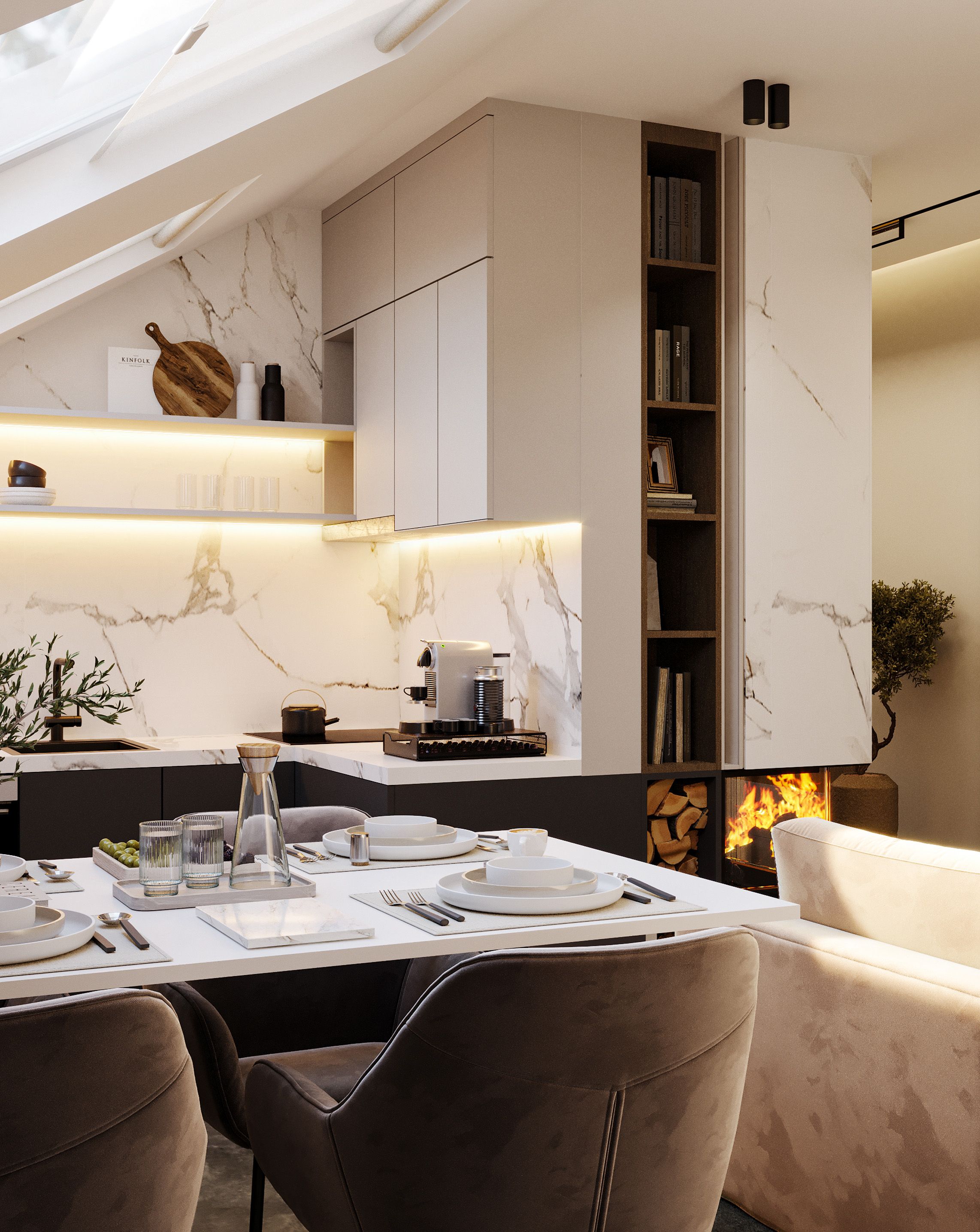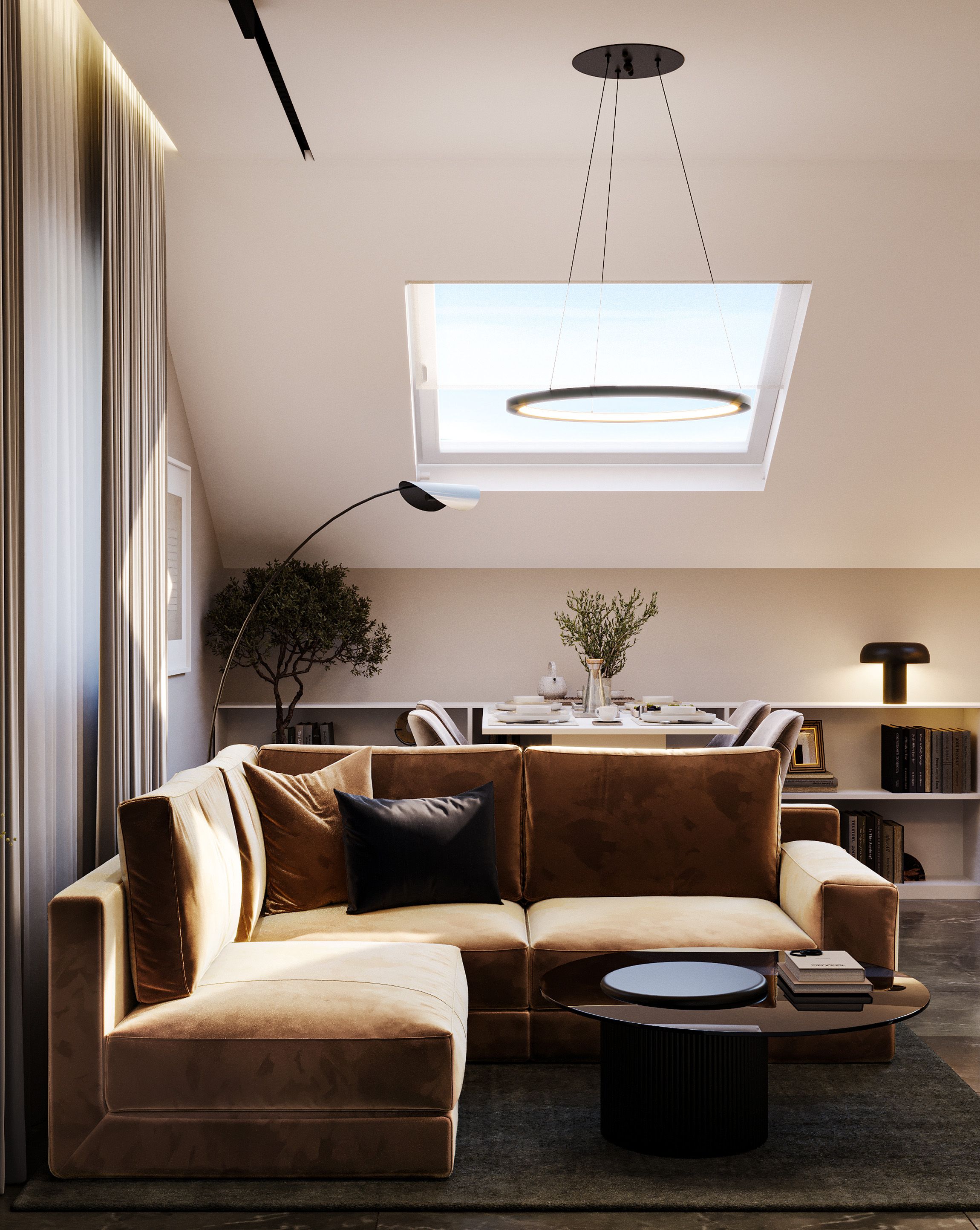 Designing a family-friendly apartment with angled ceilings required a creative and flexible approach to make the most of the available space. Instead of seeing the unusual layout as a limitation, it became an opportunity to introduce smart storage solutions and functional design features. Every nook was carefully planned to serve a purpose, resulting in a home that feels both organized and spacious. Tailor-made furniture and built-in elements helped adapt the interior to the architecture while preserving a clean, modern aesthetic. Light tones, mirrors, and layered lighting techniques were used to visually expand the rooms and enhance natural brightness. This thoughtfully designed attic home proves that even unconventional floor plans can be transformed into comfortable and highly efficient living environments. It also offers valuable inspiration for anyone looking to optimize small apartments with sloped ceilings without compromising on style or practicality.