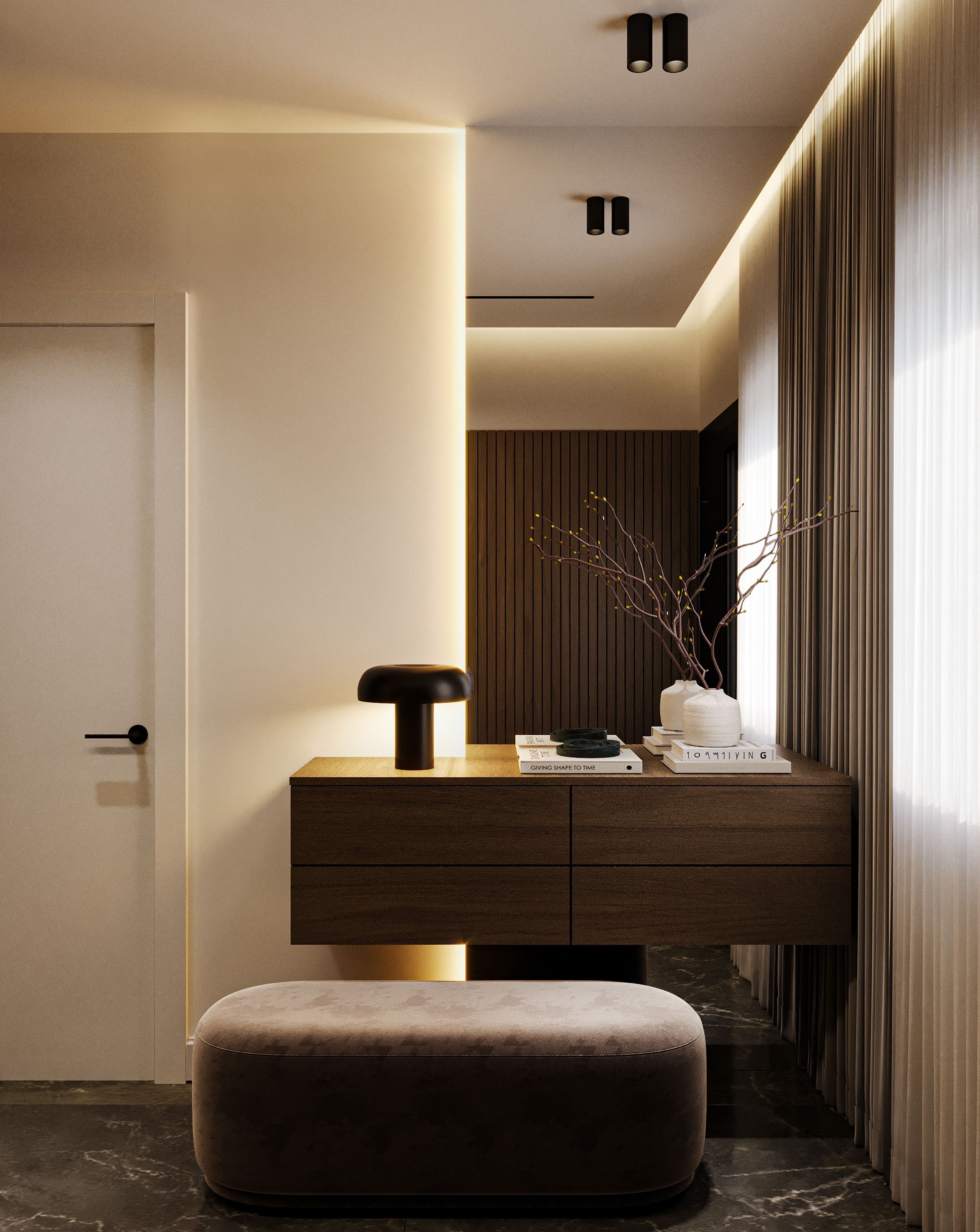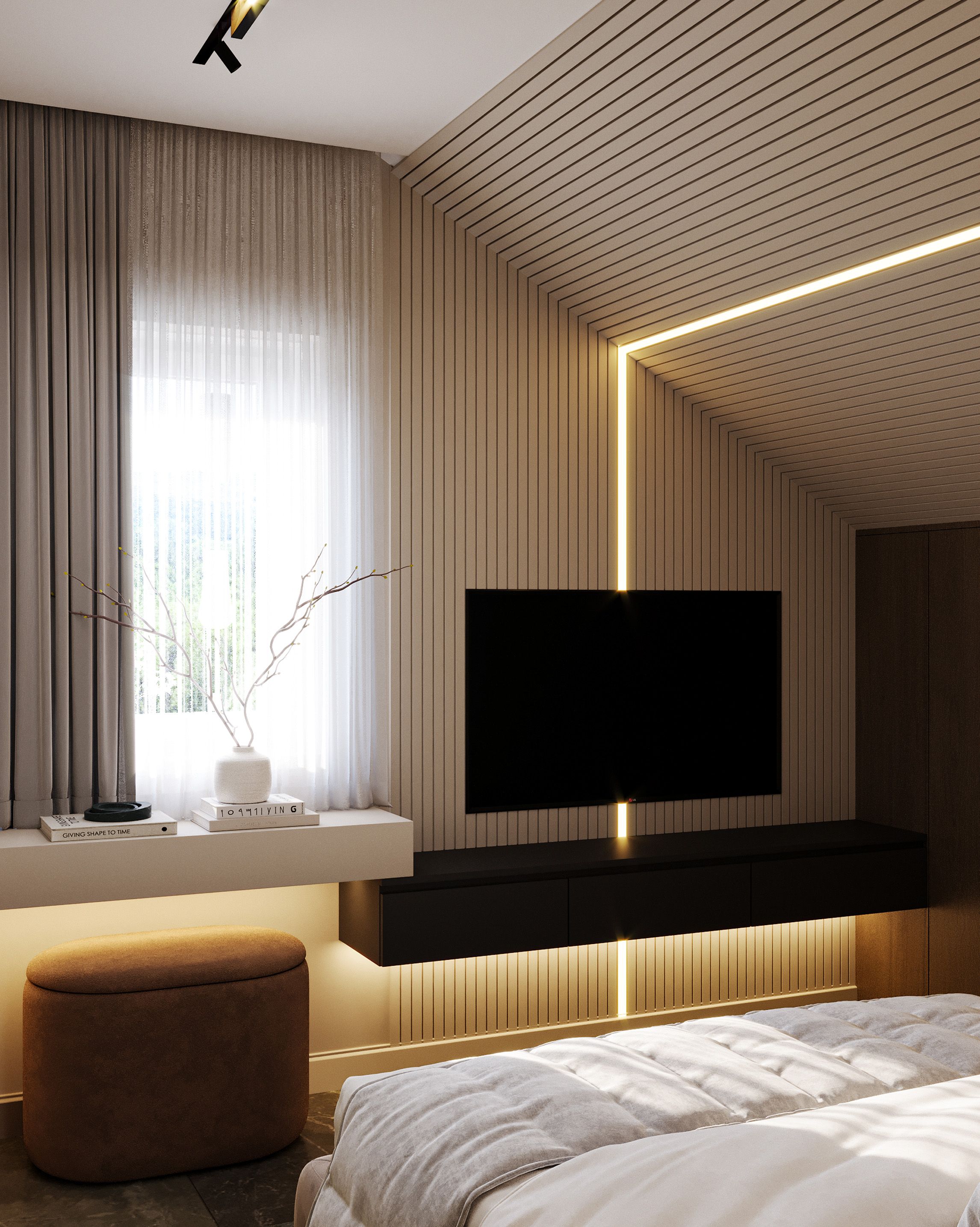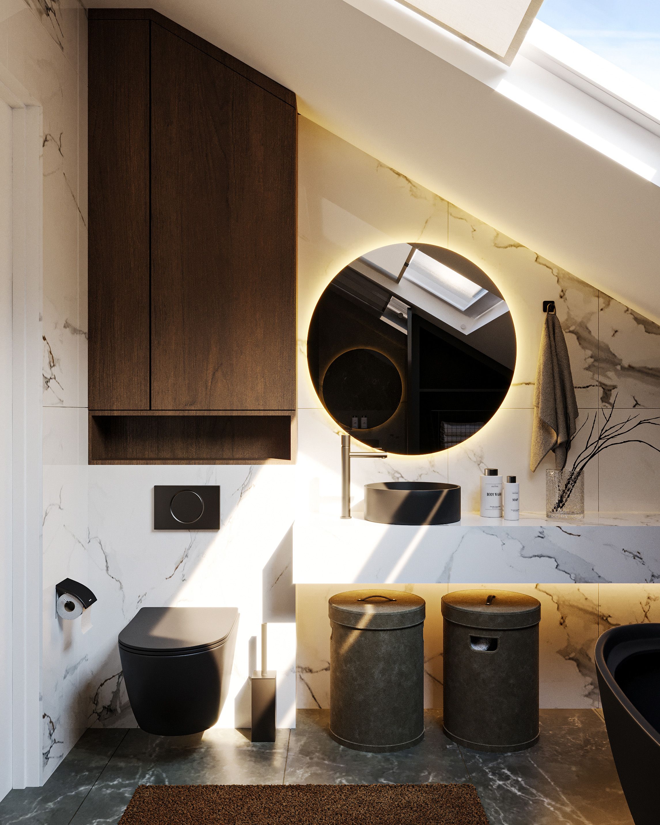 Designing a family-friendly apartment with angled ceilings required a creative and flexible approach to make the most of the available space. Instead of seeing the unusual layout as a limitation, it became an opportunity to introduce smart storage solutions and functional design features. Every nook was carefully planned to serve a purpose, resulting in a home that feels both organized and spacious. Tailor-made furniture and built-in elements helped adapt the interior to the architecture while preserving a clean, modern aesthetic. Light tones, mirrors, and layered lighting techniques were used to visually expand the rooms and enhance natural brightness. This thoughtfully designed attic home proves that even unconventional floor plans can be transformed into comfortable and highly efficient living environments. It also offers valuable inspiration for anyone looking to optimize small apartments with sloped ceilings without compromising on style or practicality.