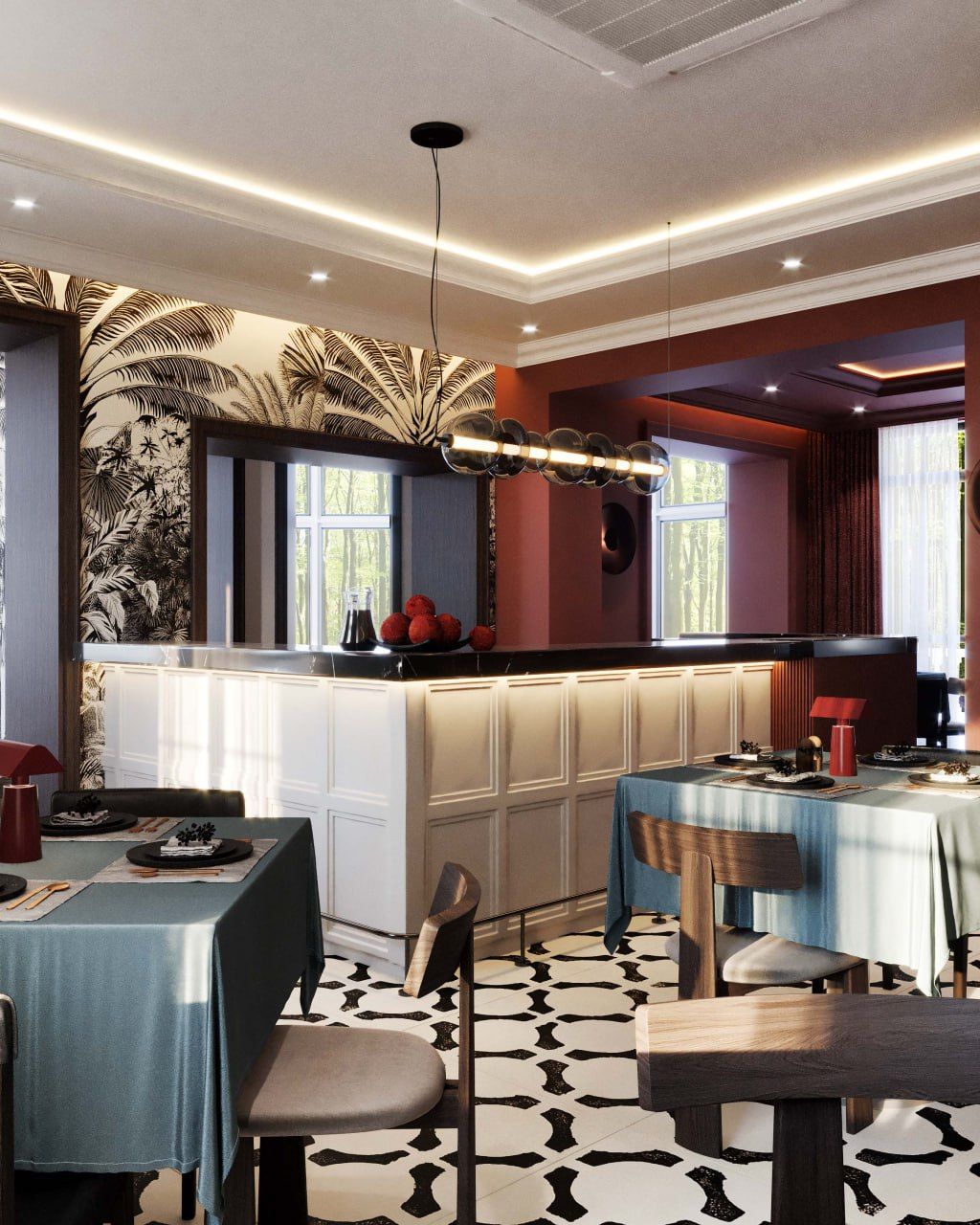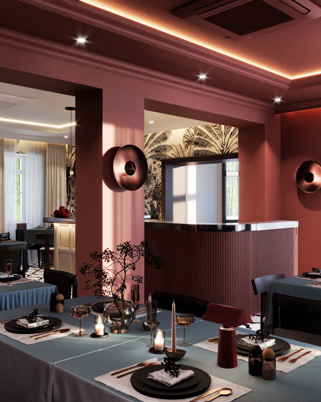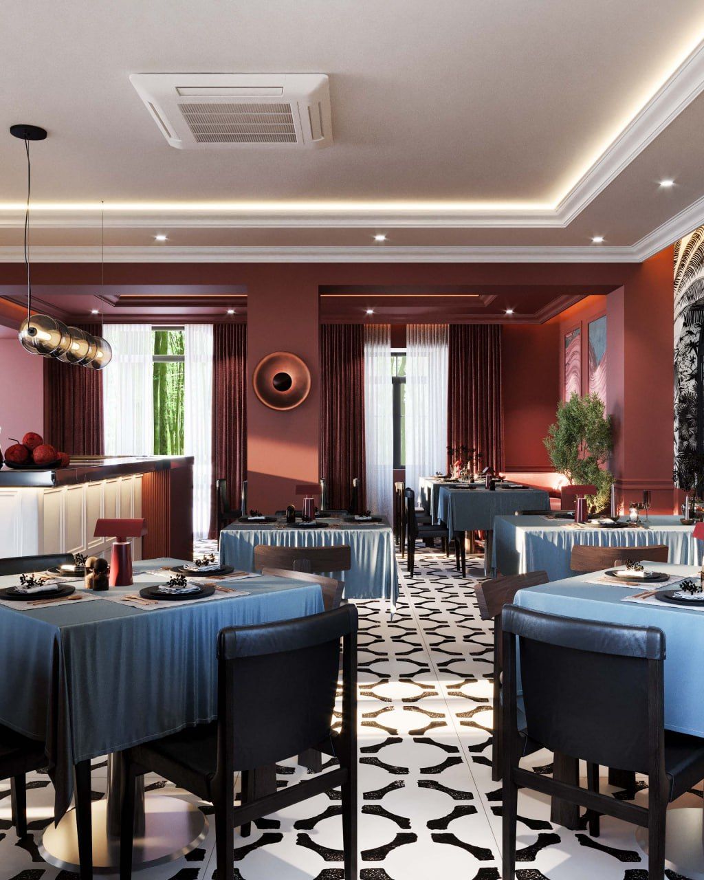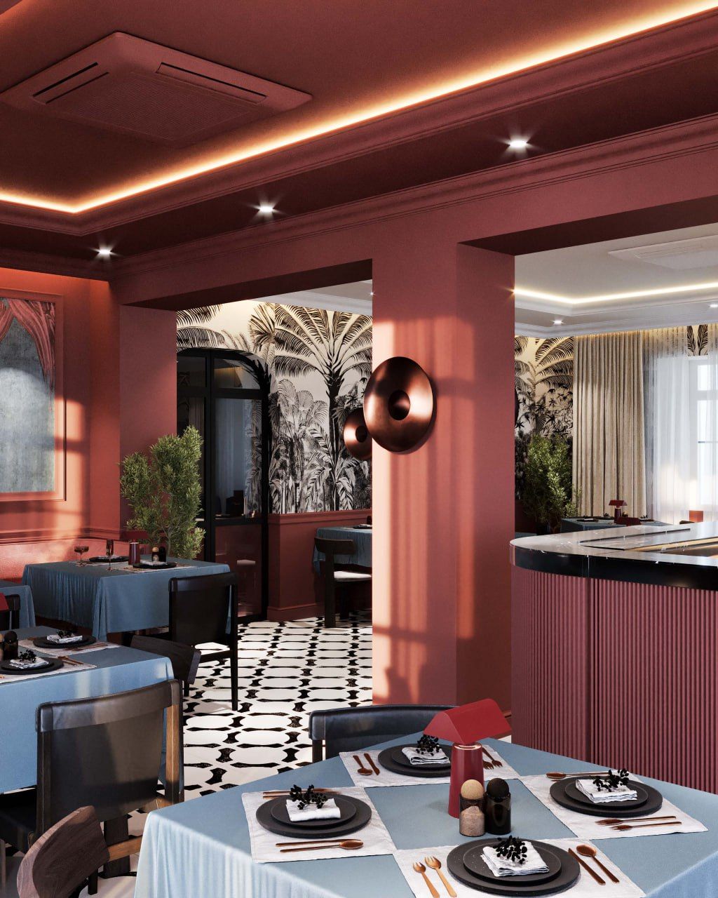 This distinctive restaurant blends a bold color palette of deep red and crisp white with a seamless mix of modern sophistication and timeless elegance. The interior design creates a dynamic yet refined atmosphere, where contemporary lines meet classic influences. Thoughtfully designed lighting and textures enhance the space, making it both visually engaging and comfortable. Whether for a casual meal or a special evening, the ambiance elevates every dining experience. A perfect fusion of energy and tradition, this restaurant offers a memorable setting for food, conversation, and style.
